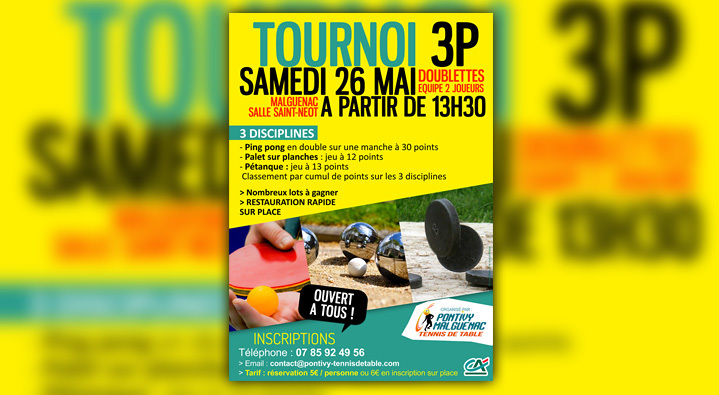 TOURNOI 3P (3 disciplines : Ping Pong, Pétanque, Palet sur planche)