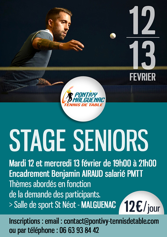 Le stage se déroulera le mardi 12 et le mercredi 13 février de 19h00 à 21h00