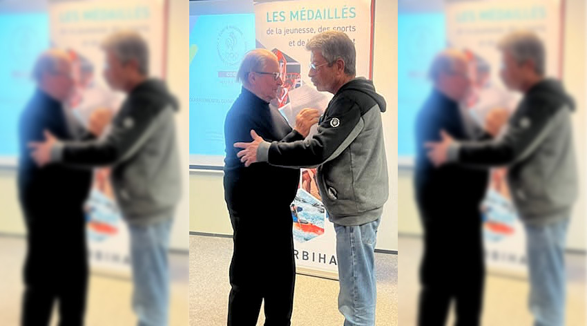 Remise de la médaille de bronze DDJS (Direction Départementale de la Jeunesse et des Sports) à Patrick Pasco ce jour au CDOS 56 (Comité Départemental Olympique et Sportif).